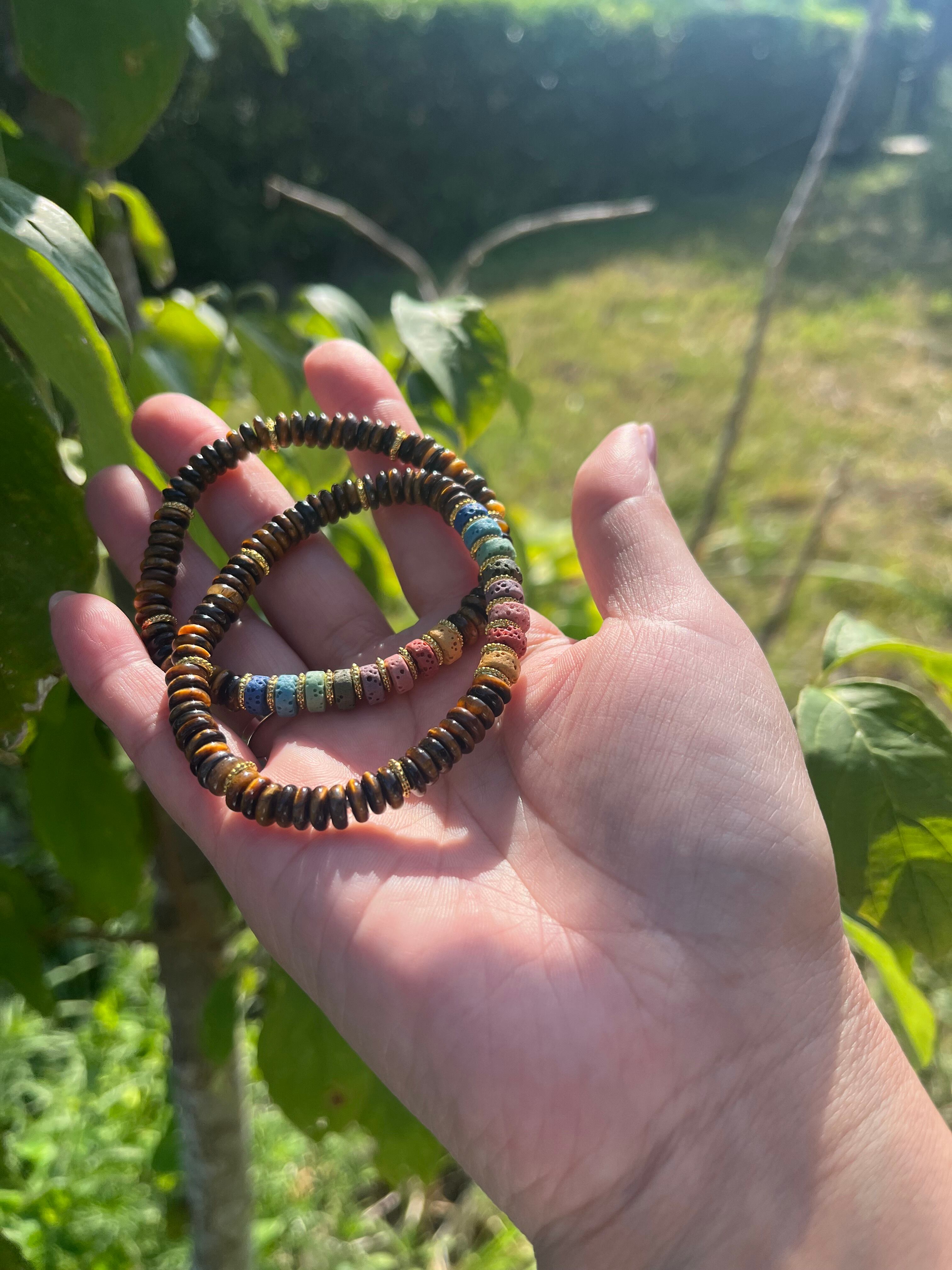 タイガーアイと火山石ブレス ボタンカット | MOMENT STONE