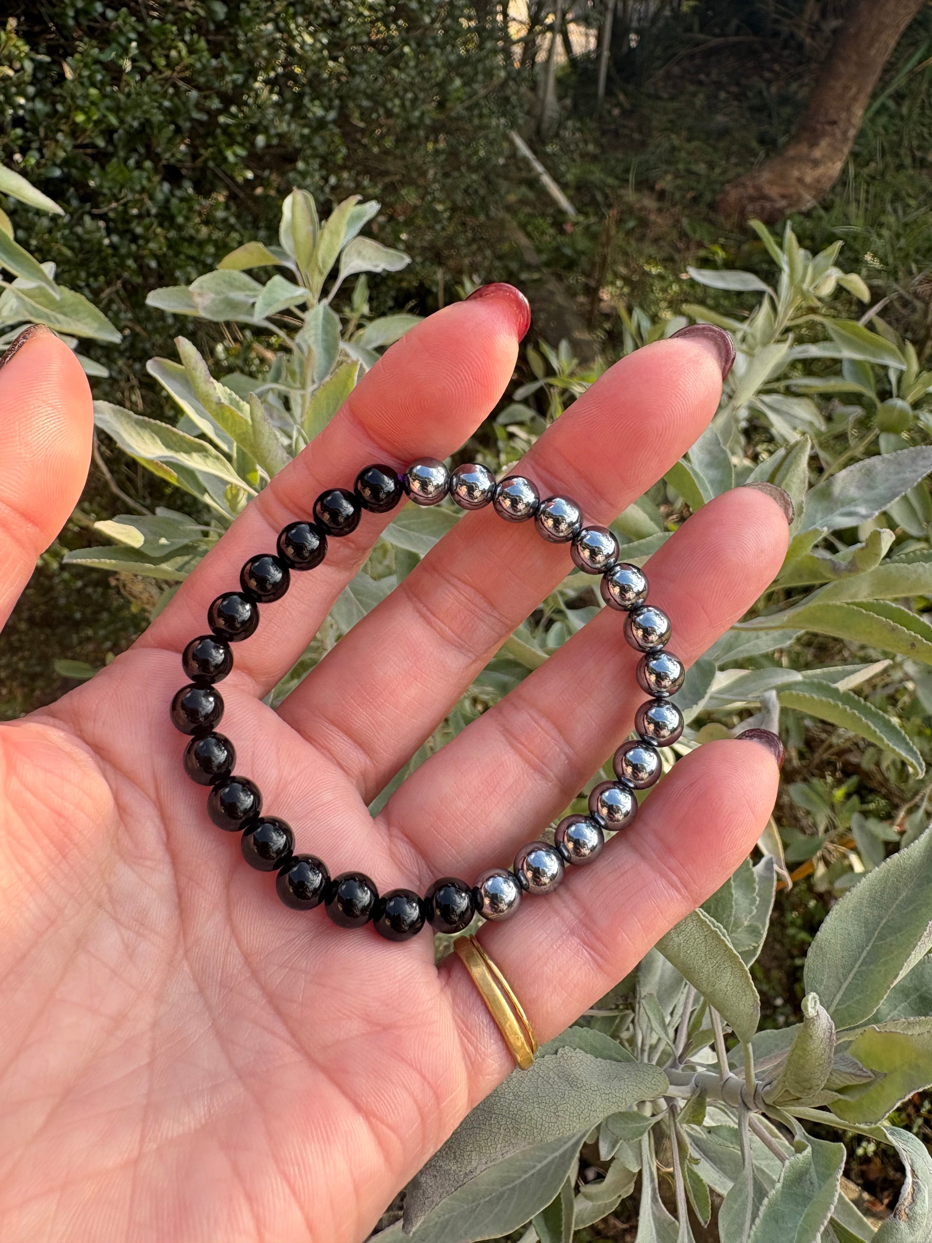 6mm玉のテラヘルツとオニキスでブレスレット作りました。
